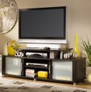 South Shore Entertainment Furniture merges form and function to accomplishment. Your media room has never been so well thought-out. Curved shapes, metal accents, frosted glass and an original contrast finish all come together to generate an admired and inimitable TV Stand. The ensemble is constructed from engineered-wood products with assurance of durability.