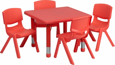 24'' Square Adjustable Red Plastic Activity Table Set with 4 Chairs - YU-YCX-0023-2-SQR-TBL-RED-E-GG